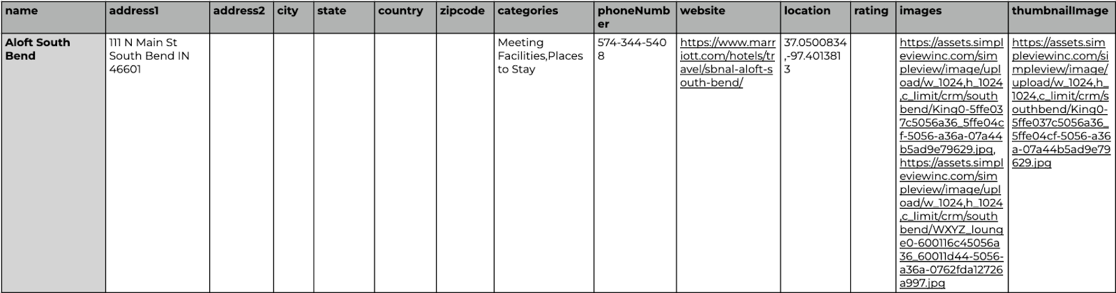 - Example: "https://www.marriott.com/hotels/travel/sbnal-aloft-south-bend/"