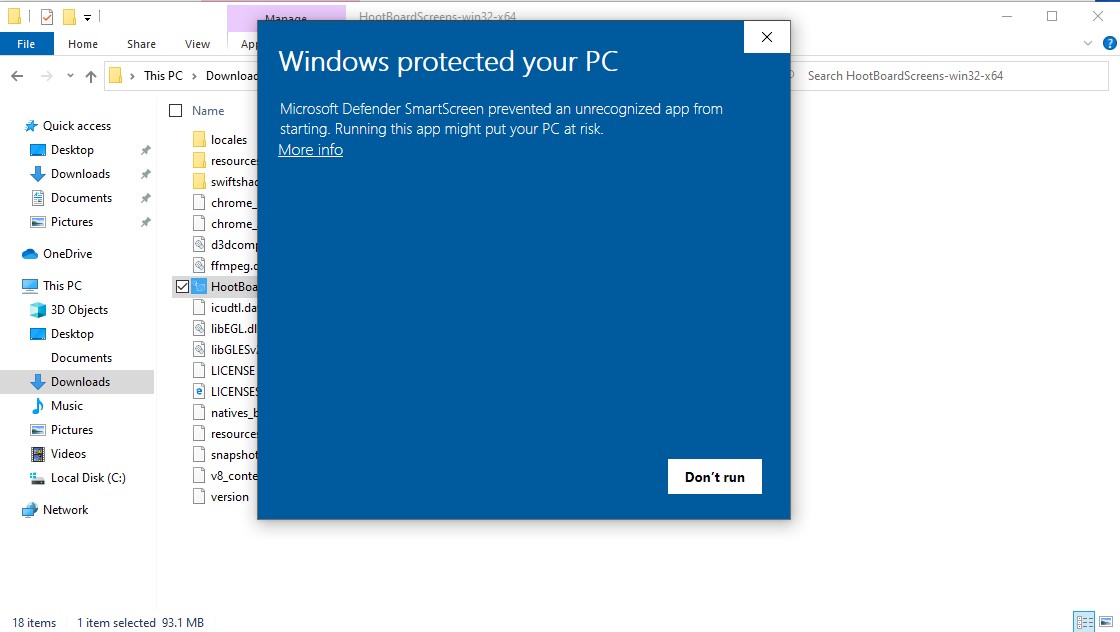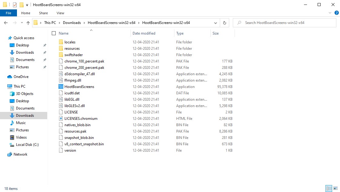 Step 3. The extracted contents should now look like this. Double click on the HootBoardScreens.exe file to open the Kiosk Simulator.