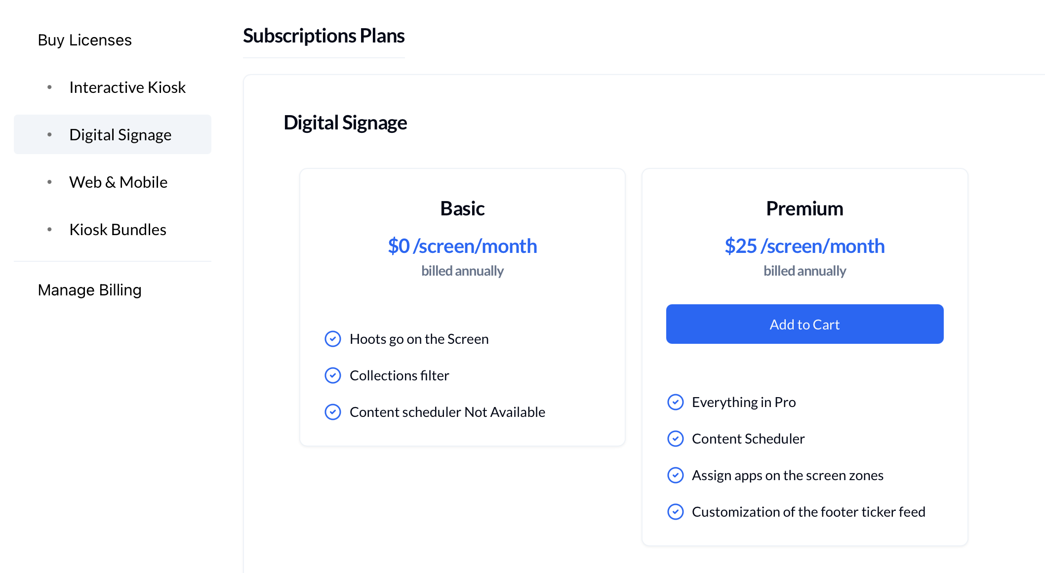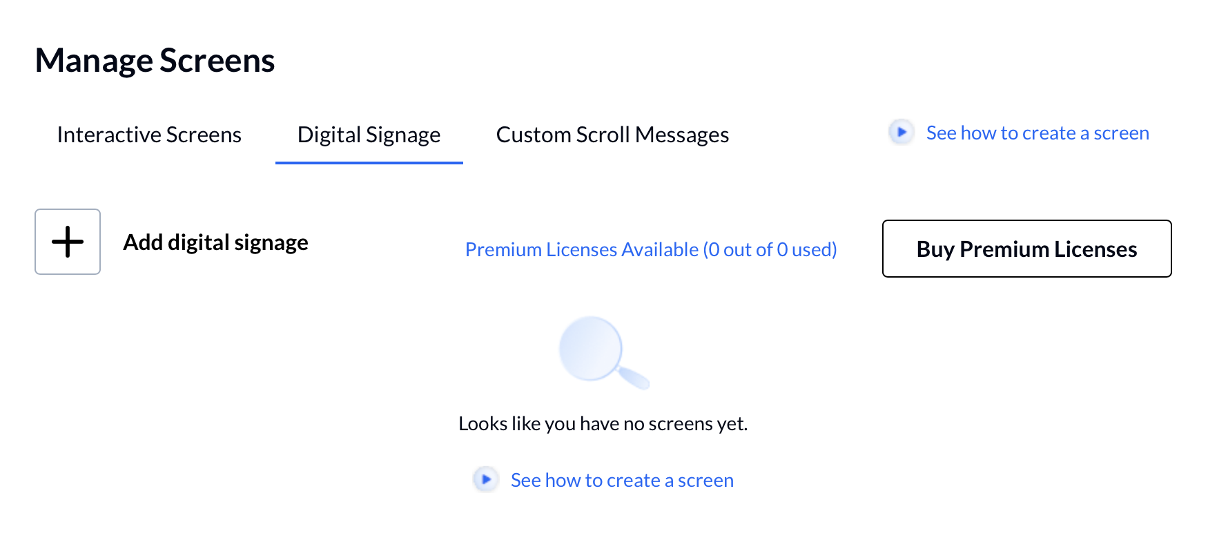- Go to Licenses > Digital Signage.