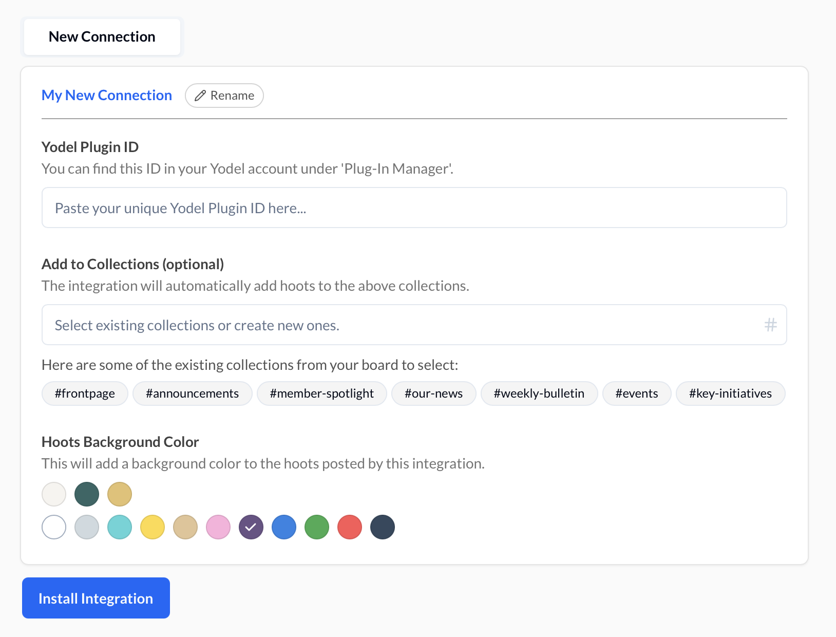 Pick a background color for the Hoots posted by this integration to match your board’s style or brand. You can choose a specific color for a consistent look or select the Random option for a variety of colors. We recommend the random option for a vibrant, dynamic feel!